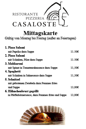 Mittagstisch von Dienstag bis Freitag außer Feiertage 7 bis 8 wechselnde Gerichte.